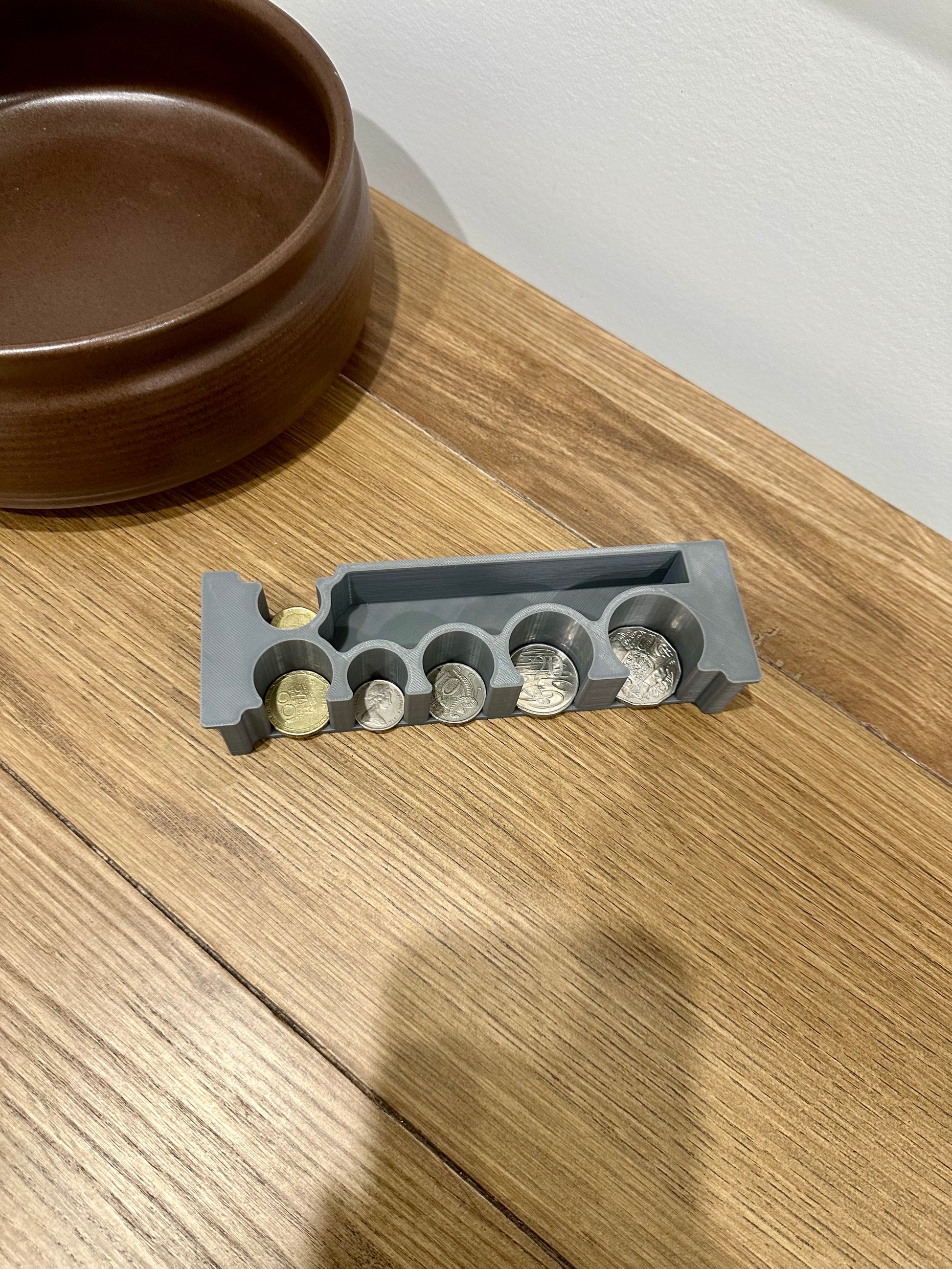 This 3D printed coin holder is expertly designed to accommodate Australian coins, providing an efficient way to organise your loose change.